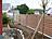 Hier wurde zwischen den Granitpfeilern eine aus Douglasien-brettern und U-Schienen erstellte Sichtschutzwand eingebaut. Im Laufe der Zeit wird sich eine grau schimmernde Patina an den Bretten bilden, was vielen Bauherren sehr gut gefällt.