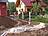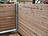 Hier wurde zwischen den Granitpfeilern eine aus Douglasien-brettern und U-Schienen erstellte Sichtschutzwand eingebaut. Im Laufe der Zeit wird sich eine grau schimmernde Patina an den Bretten bilden, was vielen Bauherren sehr gut gefällt.